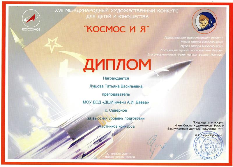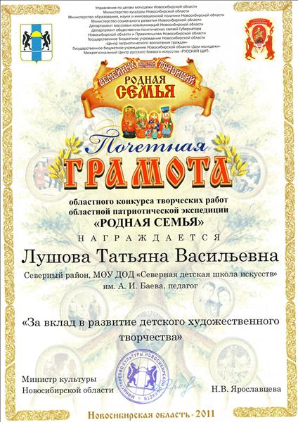 Областной конкурс творческих работ Областной патриотической экспедиции "Родная семья", Почетная грамота "За вклад в развитие детского художественного творчества"